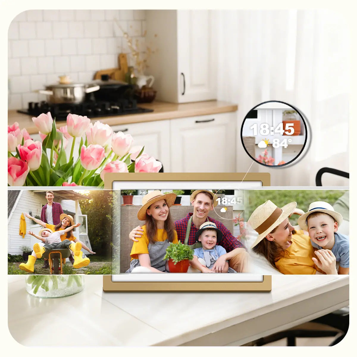 Verwandeln Sie Ihren Rahmen in ein praktisches und formschönes Informationszentrum. Die Uhr- und Wetterfunktion hält Ihnen die wichtigsten Informationen stets griffbereit.