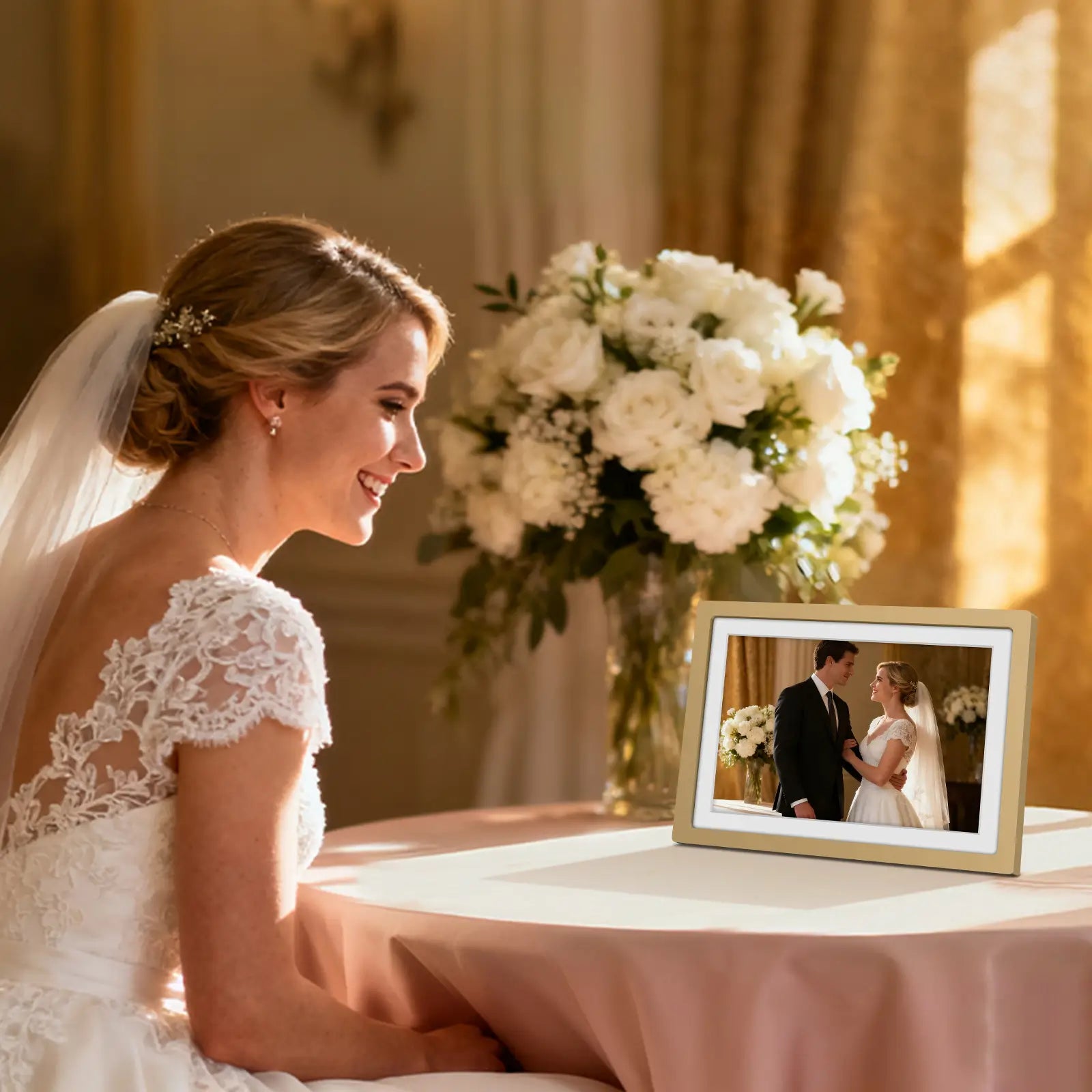 Genießen Sie den brillanten 10,1-Zoll-IPS-Touchscreen. Dank der HD-Auflösung von 1280 x 800 Pixeln und des weiten Betrachtungswinkels wird jedes Bild gestochen scharf und detailreich dargestellt – frei von Spiegelungen und Verzerrungen. Berühren und wischen Sie, und erleben Sie Ihre schönsten Erinnerungen in unglaublicher Klarheit.