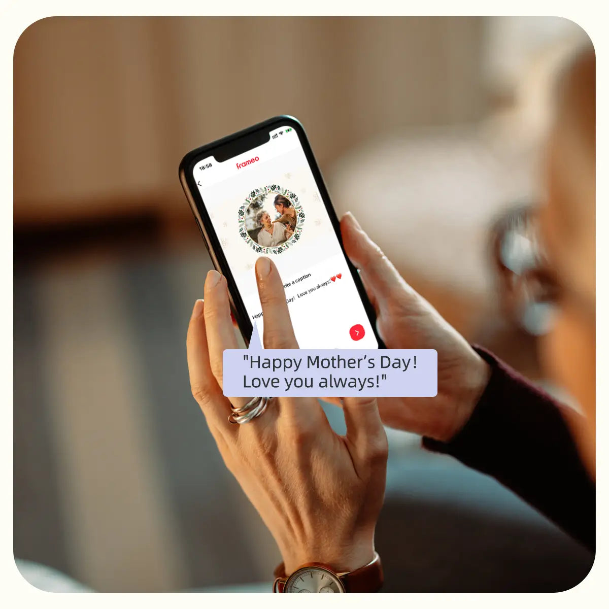 Mit der Frameo Greetings-Funktion sind Ihre Liebe und Ihre besten Wünsche nur einen Fingertipp entfernt.