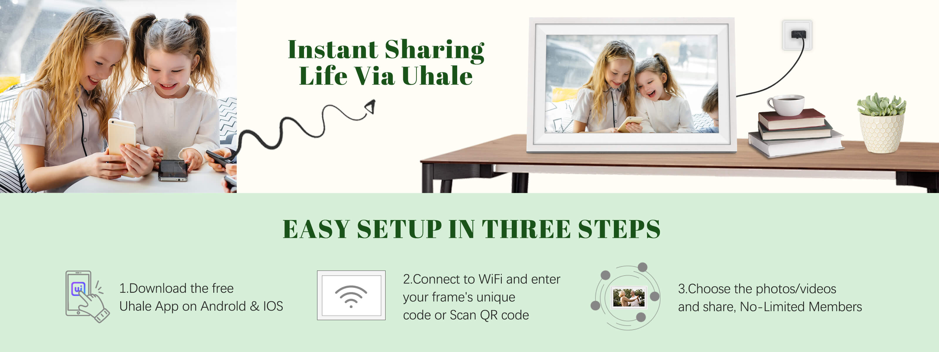 Just need to simply set it up and connect it to your phone, then you can share the photo or video from phone to frame instantly. Check more details here.